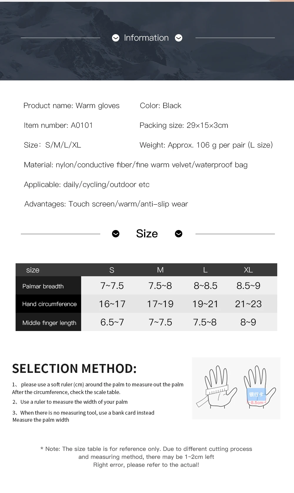Comprimento das luvas: Pulso